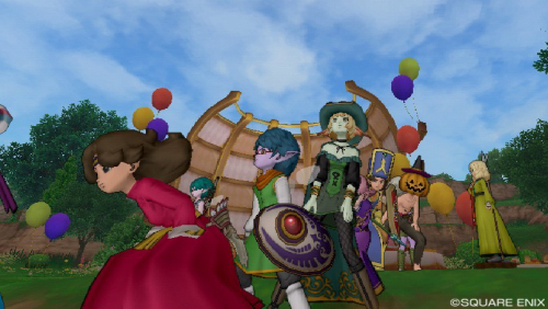 ステージを背にみんなで風船しょいしょいサイクロン。