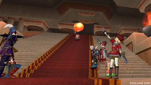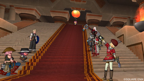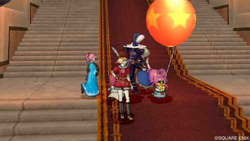 レッドカーペットを歩くから、みんなはその両脇に立って武器をかかげたり