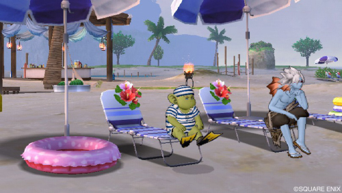 パラソルの下でるんるん。