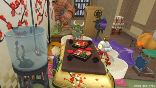 ふすまの奥はくつろぎ空間 2014/6/5 2015/9/8 ヒコの活動記録 2 ふすまを開けたお部屋の奥、ダストンさんとラグアス王子が こたつでぬくぬくおくつろぎ中。 じゃぁちょっとお邪魔して……。 おせちもそろってるし、こりゃあいい具合のくつろぎ感。 あーやれやれ世界の平和ってなんだっけ? しばらくお留守のこたたさんチの安全パトロール中。 ホントだよ。