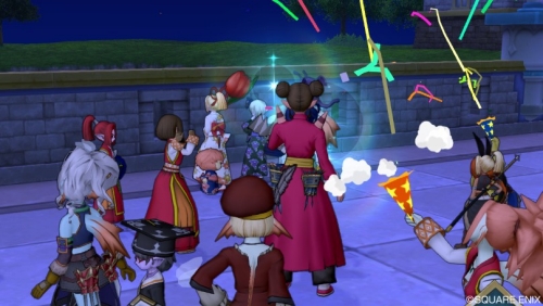 ということでグランゼドーラ城前で、見知らぬ冒険者の皆さんとお祝い中。