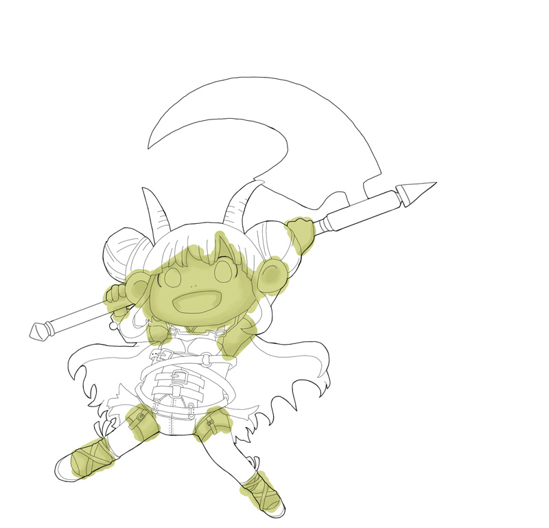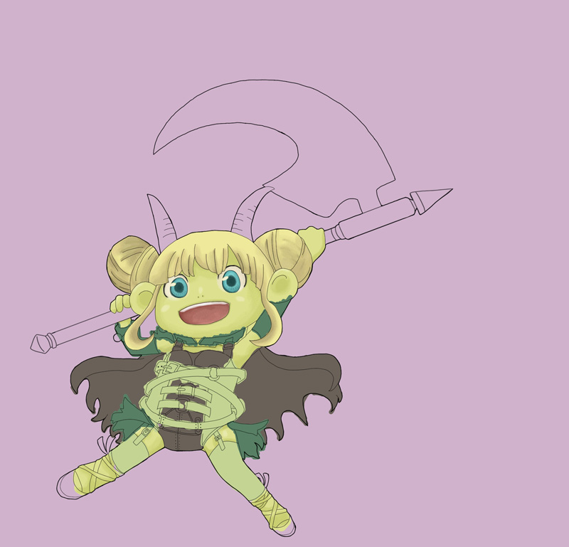 最初に描いてたのは『かま』というより『オノ』だったので